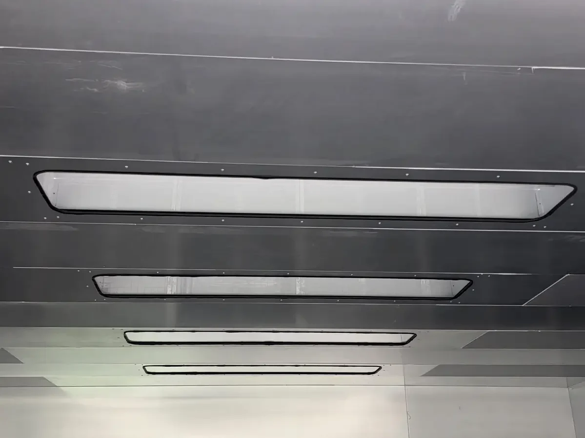 Roof panels were fitted with LED battens mounted behind sealed glass panels, providing effective and maintenance-friendly illumination across the entire working area whilst protecting the lighting units from overspray contamination during the gel coat application process.