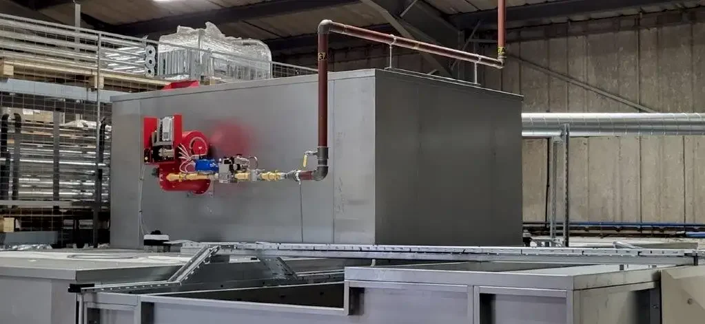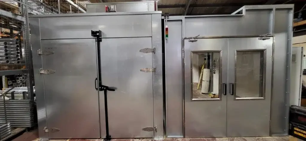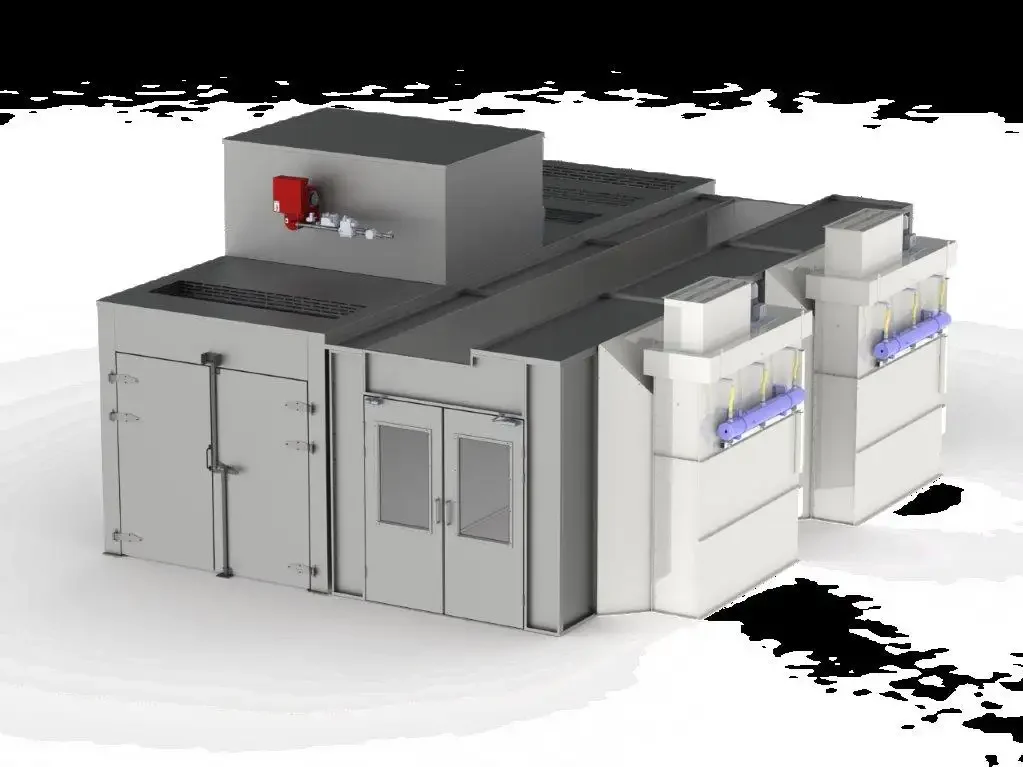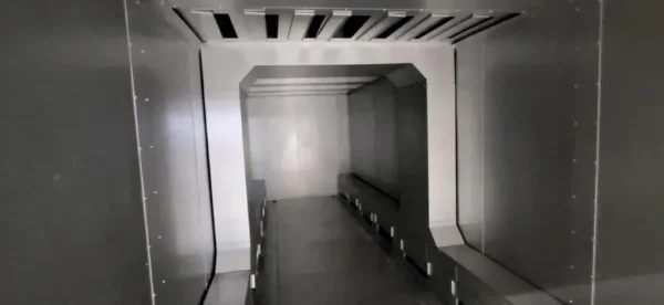 The client required this system to replace using external supplier for their coating process, reducing the cost by brining this in house. Fabricated products are first bought into the powder coating enclosure where multiple powder coating colours can be applied.